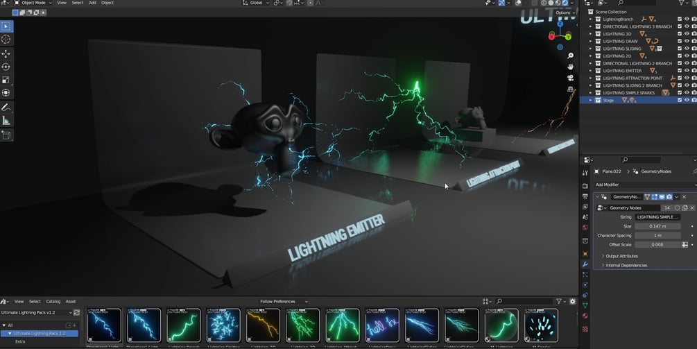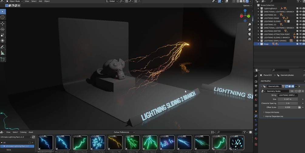 Unleash the power of Blender's Geometry Nodes with the Procedural Lightning Effects pack by Hell FX. Take your scenes to the next level with our diverse collection of lightning effects designed to meet all your creative needs. Whether you desire a striking single lightning branch or the electrifying allure of sliding lightning, this pack has got you covered. Simply drag and drop into your scene and ignite your imagination!