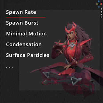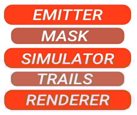 Build effects by combining three core modifiers β Emitters, Simulators, and Renderers β plus optional Trails for added motion detail.