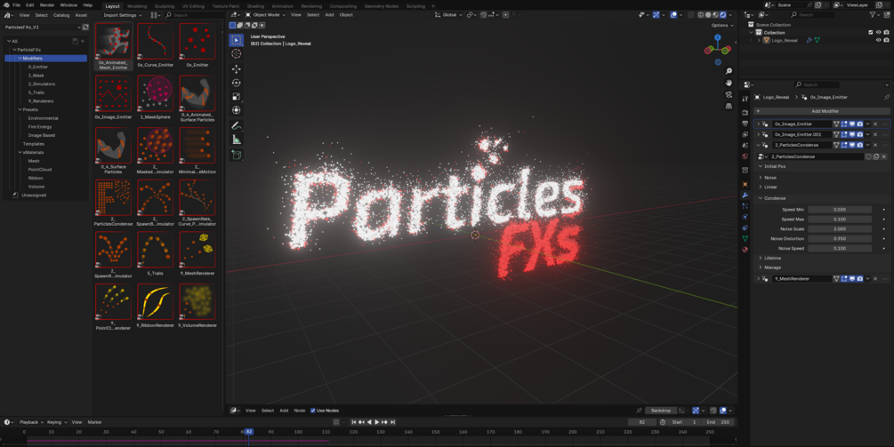 Particles FXs is the latest procedural effects generator for Blender. It gives you a powerful, flexible way to design particle-based visual effects through a layered, non-destructive workflow. Whether you want to build your own simulations from scratch or quickly get started with presets and templates, Particles FXs makes creating stunning particle effects easier than ever.